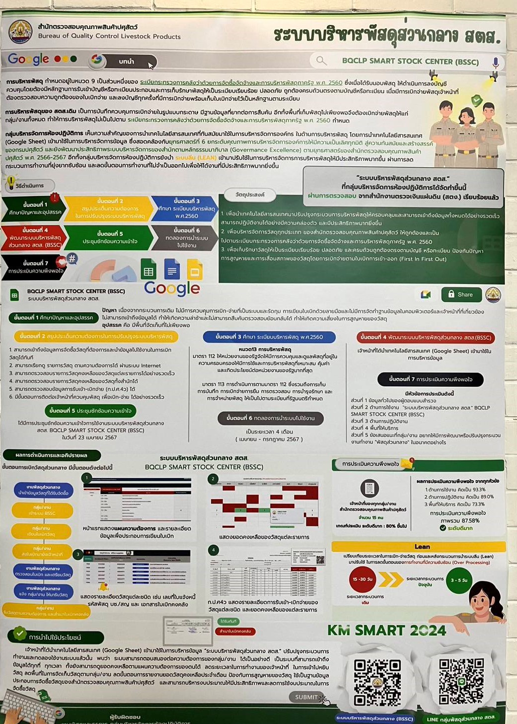 วันที่ 1 สิงหาคม 2567 นายสัตวแพทย์อุดม เจือจันทร์ ผู้อำนวยการสำนักตรวจสอบคุณภาพสินค้าปศุสัตว์เป็นประธานกล่าวเปิดโครงการ “KM SMART 2024 BQCLP" ณ โรงแรมพาโค่ เขาใหญ่ จ.นครราชสีมา เพื่อเป็นเวทีให้บุคลากรของสำนักตรวจสอบคุณภาพสินค้าปศุสัตว์ ได้นำเสนอองค์ความรู้(Knowledge Carrier) หรือบุคลากรผู้ปฏิบัติงาน ในด้านต่างๆ และนำเสนอนวัตกรรมใหม่ของ สตส.สู่ผู้ที่ปฏิบัติงานด้านเดียวกันหรือด้านอื่น และ/หรือบุคคลที่สนใจ โดยผ่านการสาธิต การบรรยาย โปรเตอร์และนวัตกรรม เป็นต้น