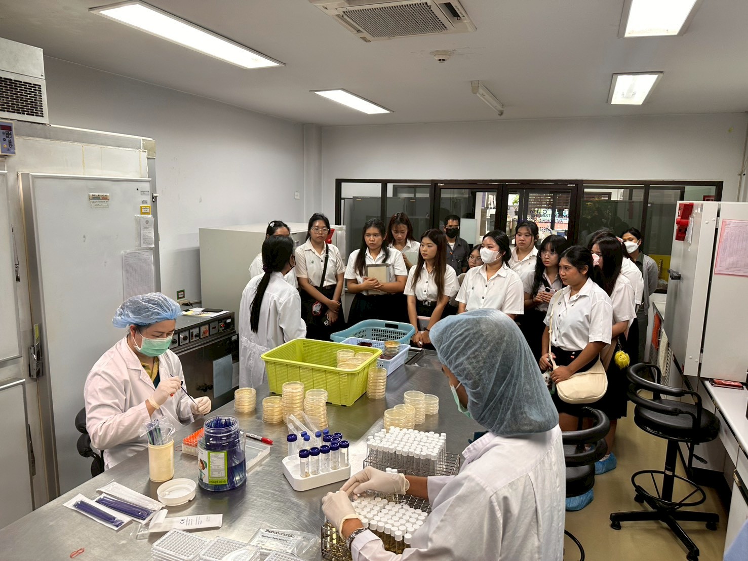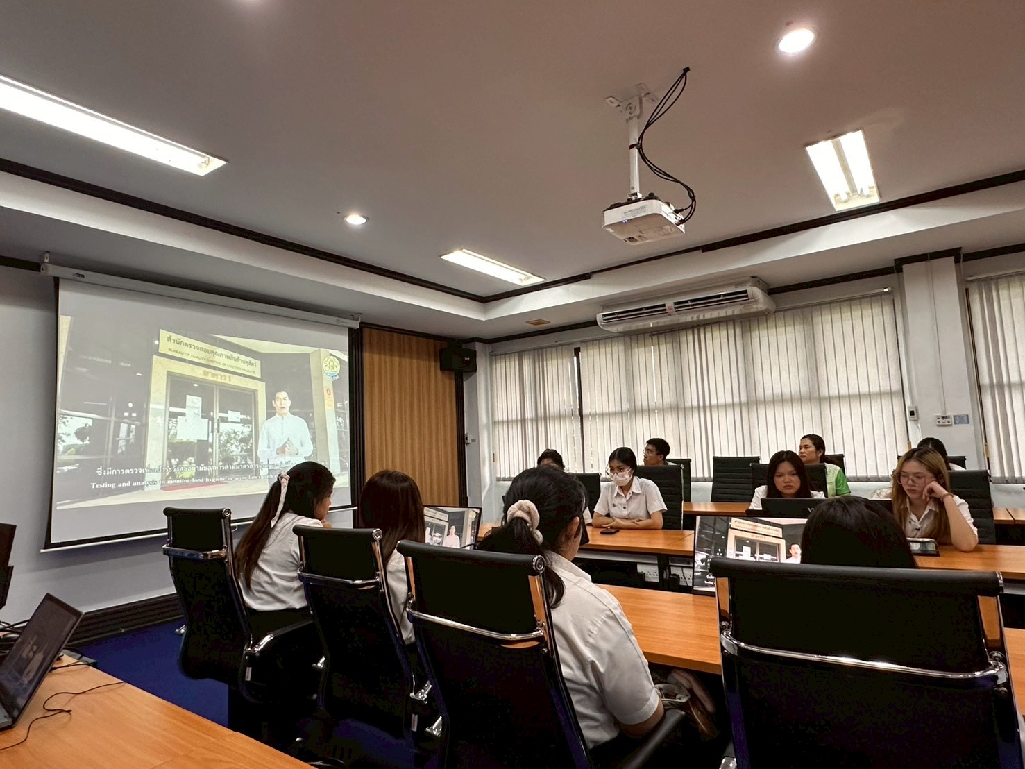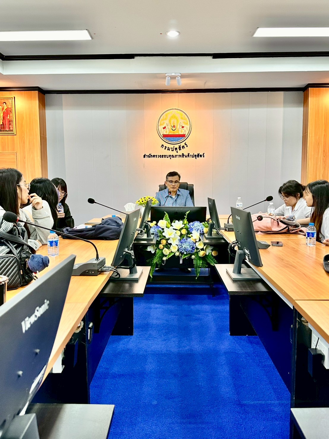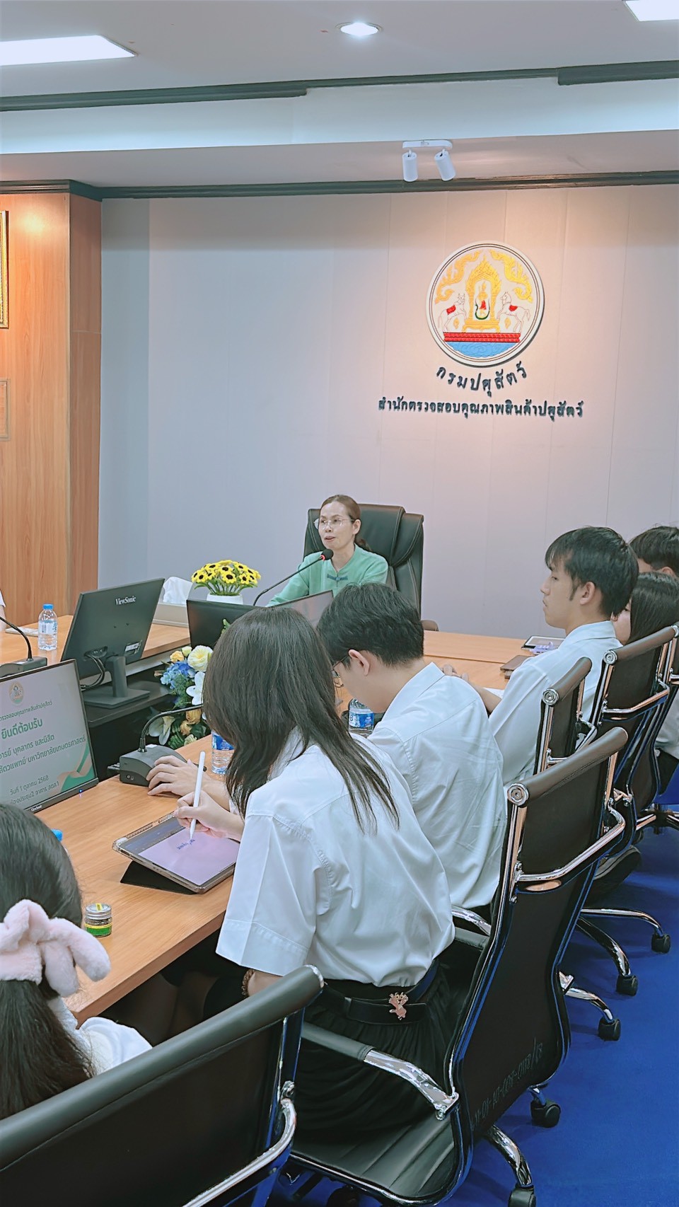 ในวันพุธที่ 1 ตุลาคม 2568 นายอุดม เจือจันทร์ ผู้อำนวยการสำนักตรวจสอบคุณภาพสินค้าปศุสัตว์ ได้มอบหมายให้ นางสาววิภาดา สิริสมภพชัย ผู้เชี่ยวชาญด้านการวิเคราะห์คุณภาพสินค้าปศุสัตว์ สตส. เข้าร่วมต้อนรับคณะนักศึกษา จากคณะคณะเทคนิคการสัตวแพทย์ มหาวิทยาลัยเกษตรศาสตร์ พร้อมด้วยคณะอาจารย์ เข้าเยี่ยมชมห้องปฏิบัติการสำนักตรวจสอบคุณภาพสินค้าปศุสัตว์ ในวันที่ 1 และวันที่ 3 ตุลาคม 2568 รวมทั้งสิ้น 128 คน ณ ห้องประชุม 2 สำนักตรวจสอบคุณภาพสินค้าปศุสัตว์ จ.ปทุมธานี