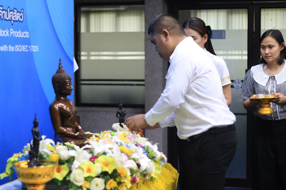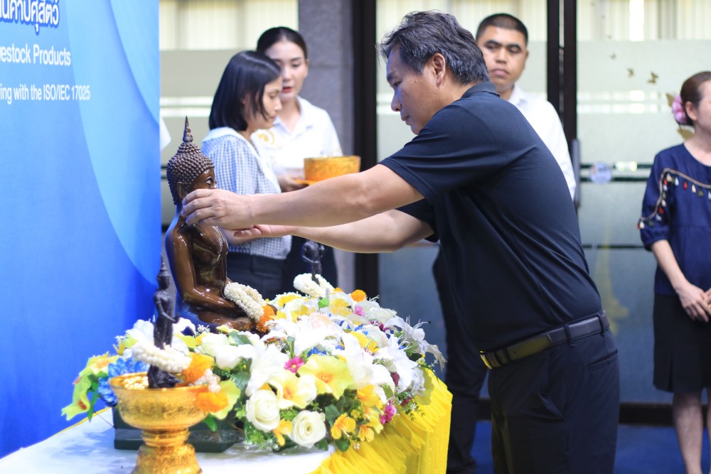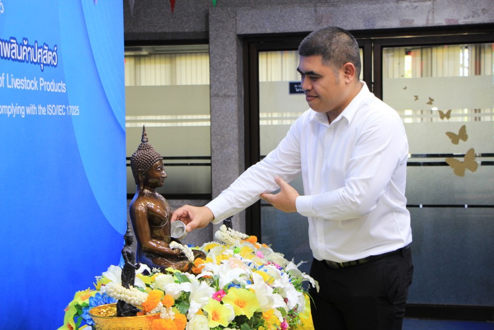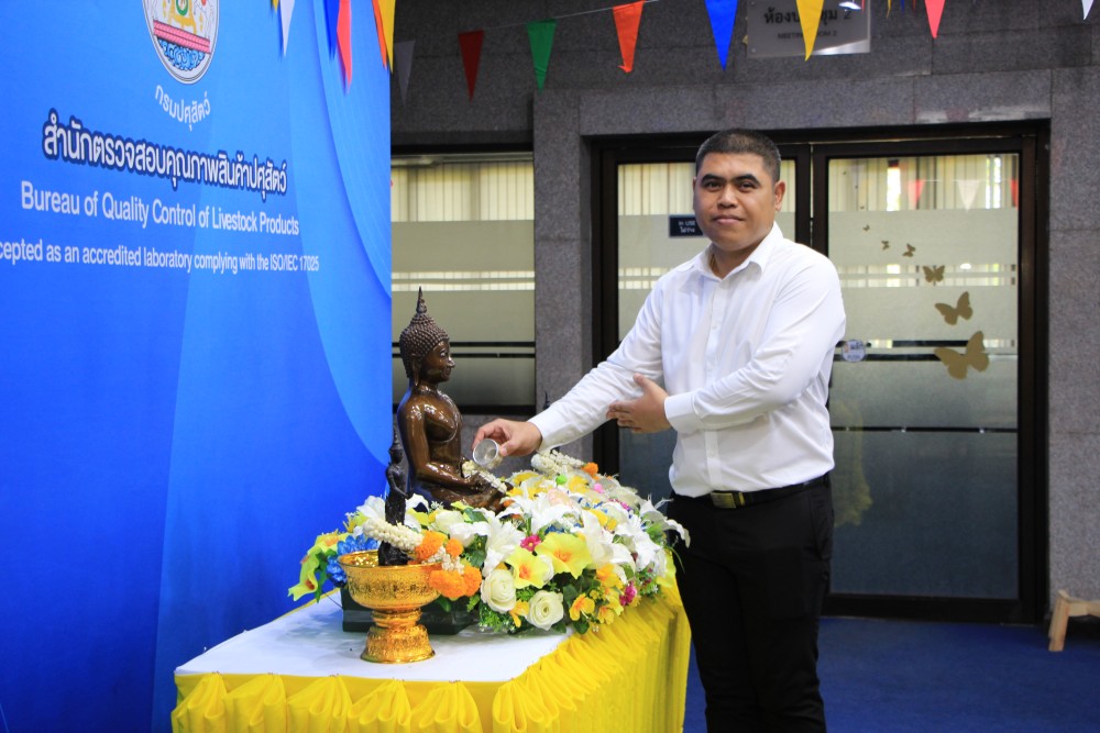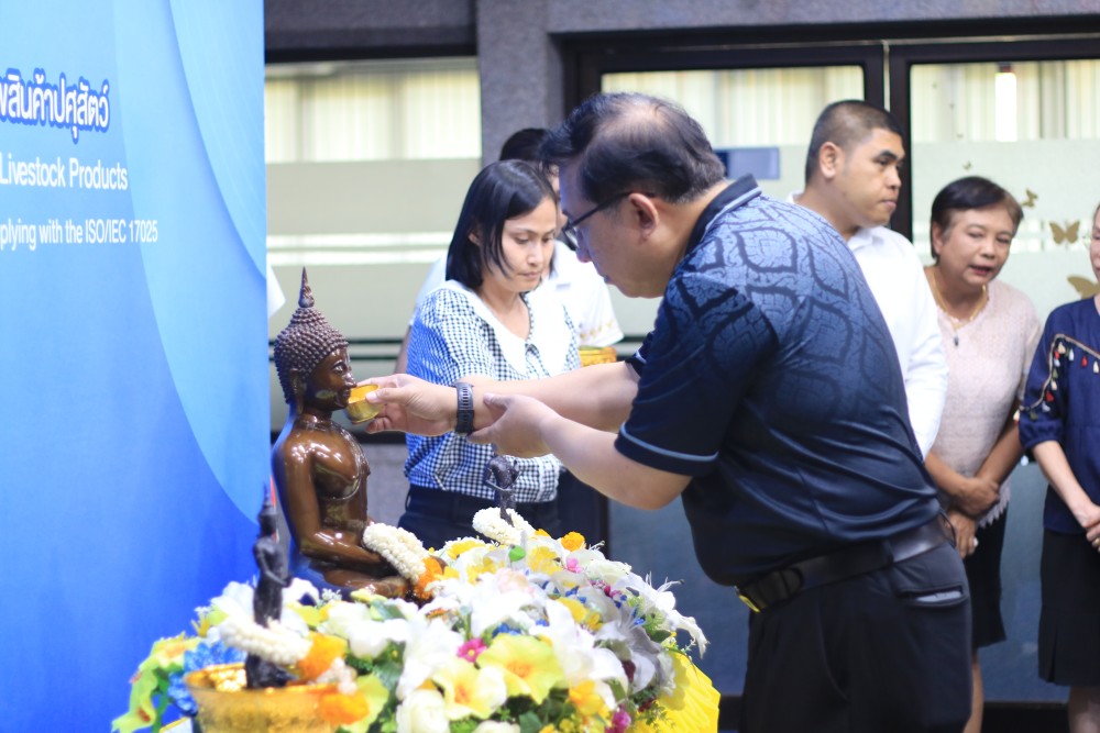 วันที่ 8 เมษายน 2569 นายสัตวแพทย์จิรภัทร อินทร์สุข ผู้อำนวยการสำนักตรวจสอบคุณภาพสินค้าปศุสัตว์ ร่วมกับ ข้าราชการ พนักงานราชการ และเจ้าหน้าที่ จัดกิจกรรมสรงน้ำพระพุทธรูป เนื่องในวันสงกรานต์หรือวันปีใหม่ไทย