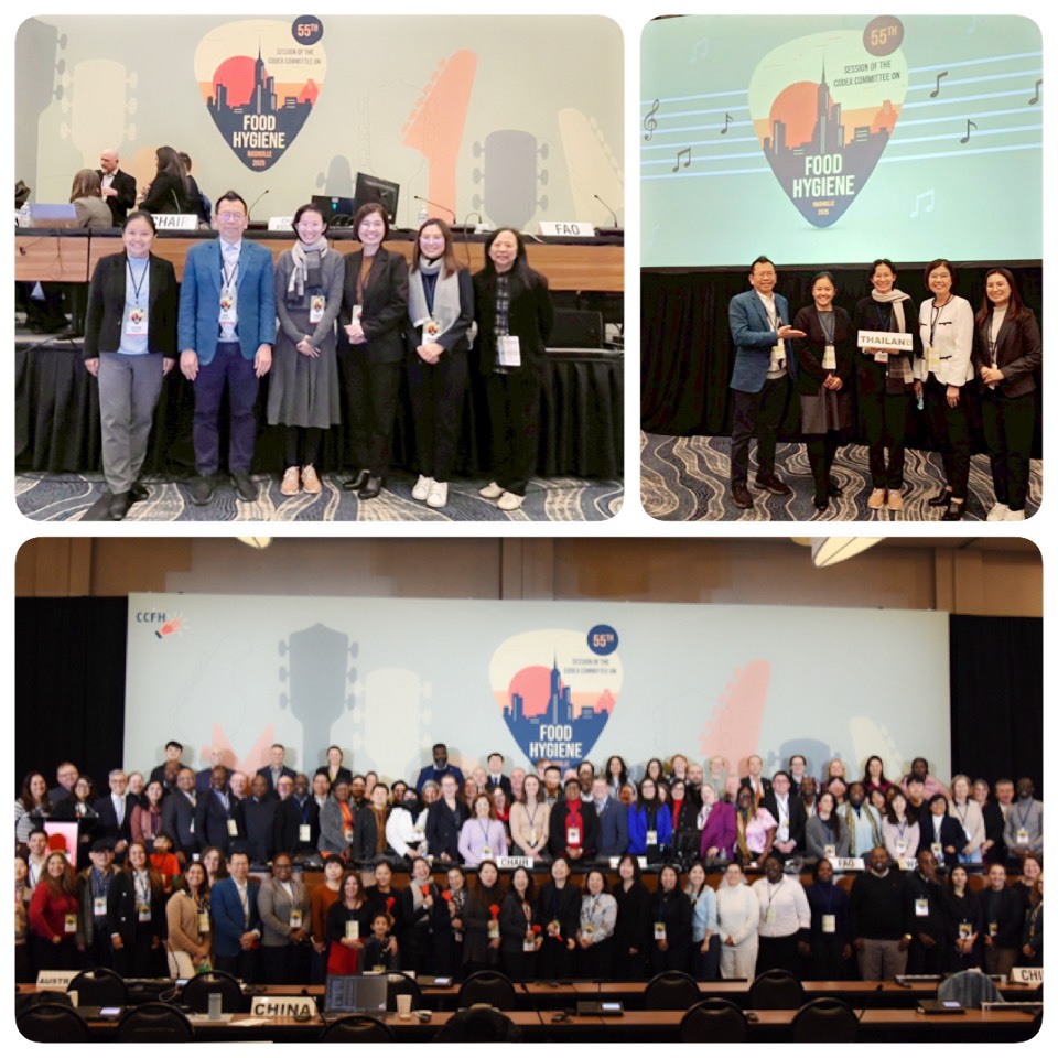 การประชุมคณะกรรมการโคเด็กซ์ สาขาสุขลักษณะอาหาร (Codex Committee on Food Hygiene: CCFH) ครั้งที่ 55 จัดขึ้นระหว่างวันที่ 15–19 ธันวาคม 2568 ณ เมืองแนชวิลล์ รัฐเทนเนสซี สหรัฐอเมริกา โดยนางสาวสุภาพร วงศ์ศรีไชย ผู้แทนจากสำนักตรวจสอบคุณภาพสินค้าปศุสัตว์ ผู้แทนจากกรมปศุสัตว์ สำนักงานมาตรฐานสินค้าเกษตรและอาหารแห่งชาติ (มกอช.) และกลุ่มอุตสาหกรรมอาหารและเครื่องดื่ม สภาอุตสาหกรรมแห่งประเทศไทย และ สภาหอการค้าแห่งประเทศไทย