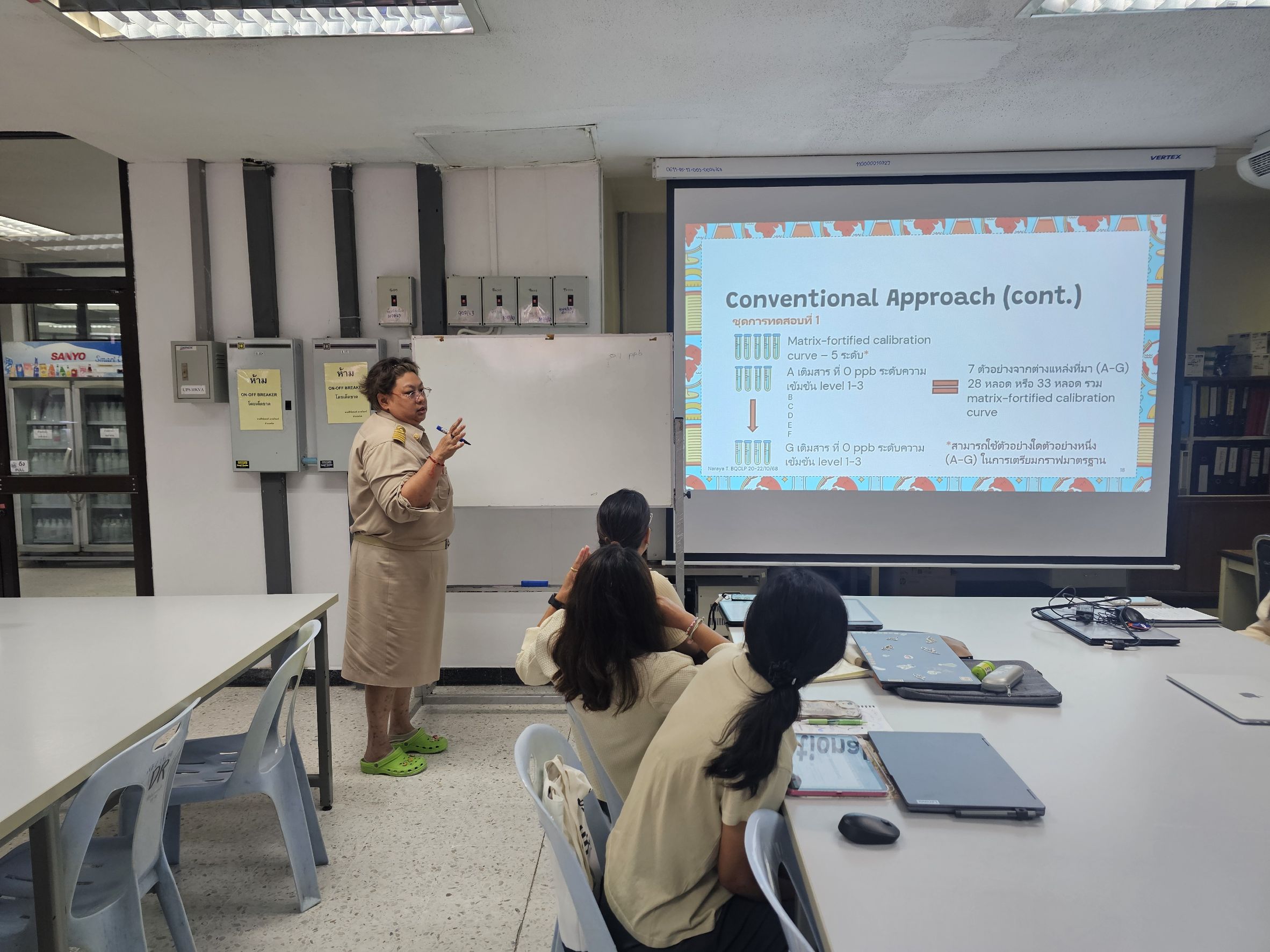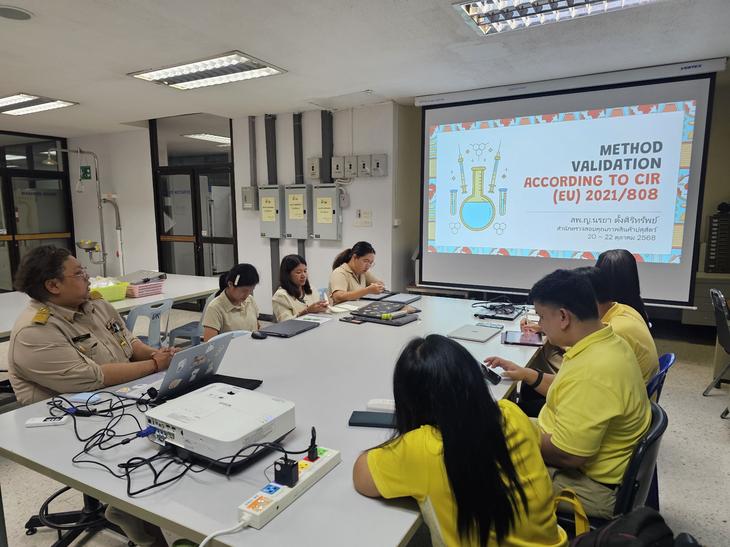 งานวิเคราะห์สารตกค้างยาสัตว์และฮอร์โมน กลุ่มตรวจสอบคุณภาพเนื้อสัตว์และผลผลิตจากสัตว์ สำนักตรวจสอบคุณภาพสินค้าปศุสัตว์ ได้จัดฝึกอบรมหัวข้อการตรวจสอบความใช้ได้ของวิธีวิเคราะห์สารตกค้างยาสัตว์กลุ่มเบต้าอะโกนิสต์ในปัสสาวะ ให้กับเจ้าหน้าที่จากศูนย์วิจัยและพัฒนาการสัตวแพทย์ จำนวน 7 ราย ระหว่างวันที่ 20-22 ตุลาคม 2568 ณ ห้องปฏิบัติการงานวิเคราะห์สารตกค้างยาสัตว์และฮอร์โมน โดยการจัดฝึกอบรมดังกล่าวมีวัตถุประสงค์ เพื่อให้เจ้าหน้าที่ศูนย์วิจัยและพัฒนาการสัตวแพทย์สามารถตรวจสอบความใช้ได้ของวิธีทดสอบสารตกค้างยาสัตว์ ตาม Commission Implementing Regulation (EU) 2021/808 ซึ่งจะเพิ่มขีดความสามารถในการตรวจวิเคราะห์ได้อย่างมีประสิทธิภาพ สำหรับรองรับการถ่ายโอนภารกิจต่อไป